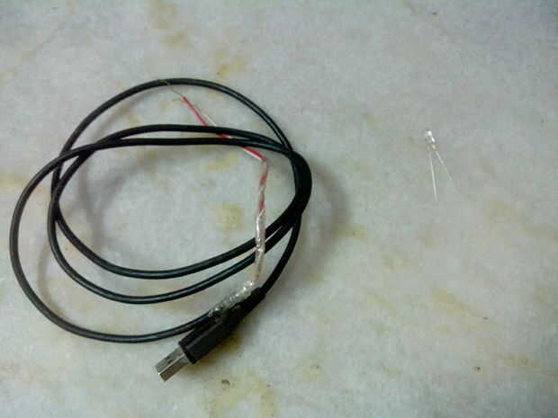 se necesita:-Un USB macho regular x1-Una pajita flexible 5mm x1-Un blanco de 5mm LED x1-resistente 270 ohm x1-chatarra de cablesHerramientas:-Soldador-Pistola de pegamento-Cinta de aislar-Tubería del encogimiento del calor-Tijeras-Cuchillo HobbyPaso