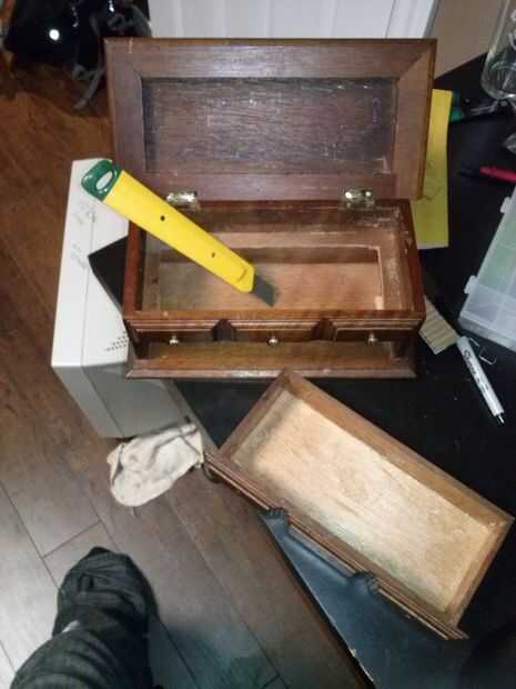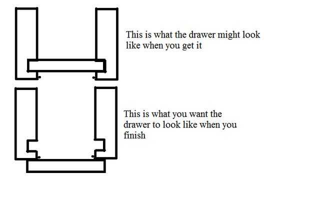 Me rompió la pieza posterior de la gaveta inferior (con mis manos) y se deslizó el inserto. Entonces pegué eso insertar madera en la parte inferior del cajón. Asegúrese de que tener suficiente espacio para hacerlo! (Es decir el cajón todavía caben después de esta parte)