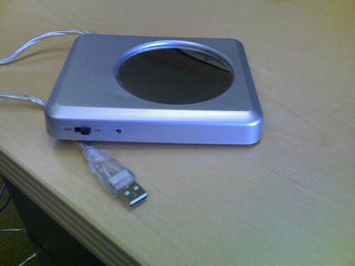 recibí un café barato de USB calentador de ebay. Éste ambos se conecta a un puerto USB del ordenador y tiene un USB 'out' en la parte posterior.