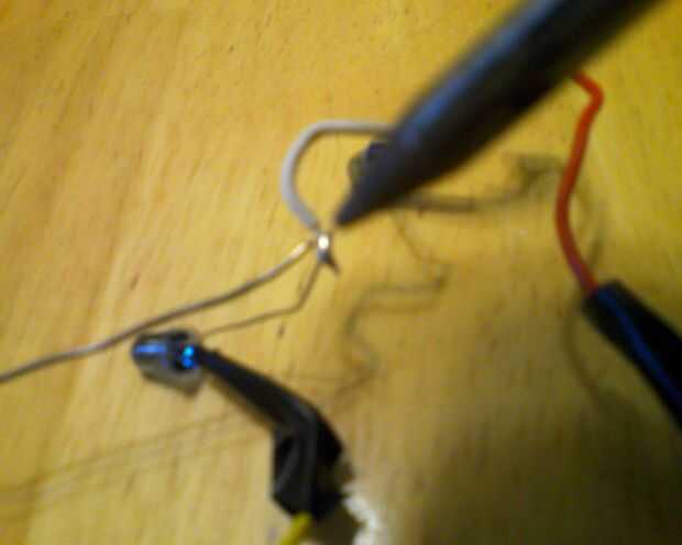 Si eres nuevo en soldadura, asegúrese de que tener una esponja húmeda para limpiar la punta de la plancha. También ser extremadamente cuidadoso para no tocar alguno de la medalla. Te recomiendo soldar sobre cartón que manera si toca cualquier soldadura no se adhieren fácil. Simplemente toque los alambres juntos que soldadura y fundirlo con el soldador. La soldadura debe quedar a los cables. También, trate de no inhalar el humo.