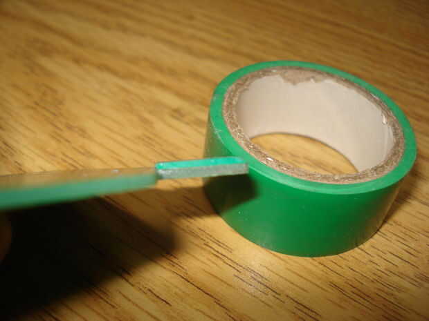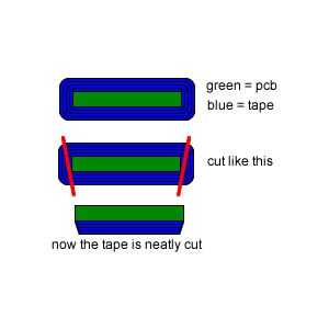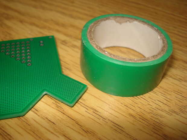 Idealmente usted quiere material del PWB espesor 2,4 mm, pero al parecer este costos extra, por lo que el valor predeterminado de 1,6 mm se utilizó. El conector USB tiene que ser más gruesa que 1,6 mm para que cinta aislante verde se aplicó a la parte posterior del conector para añadirle algunos grueso. Véase diagrama para mi técnica de aplicación de la cinta.