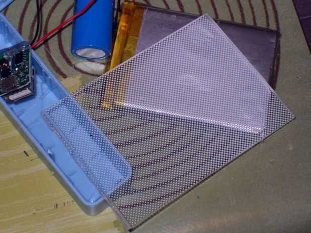 Componente electrónico de un viejo powerbanck, plexi, soldar materiales, pegamento caliente, transparente scotch, slim nuevo batería
