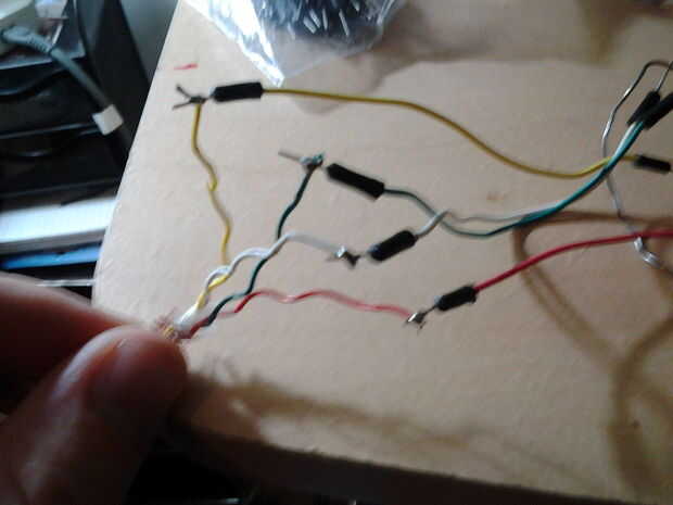 Mientras estaba esperando el tri-wing llegar, me había hackeado el conector en el extremo del cable y comenzaron a investigar que fue lo que. El Nunchuck funciona con voltaje de + 5 V lógica y se comunica con el Wiimote con I2C. Resulta que, el color del cable es no estándar y tomó algunos hurgando con un multímetro y posteriormente practicar en el IDE de Arduino serial monitor para obtener el voltaje, tierra, las líneas SDA y CLK resuelto. Después de soldar algunos cables de puente a los extremos de todos los cables para la interconexión fácil con los puertos de la entrada-salida de Arduino, estaba lista para seguir adelante.