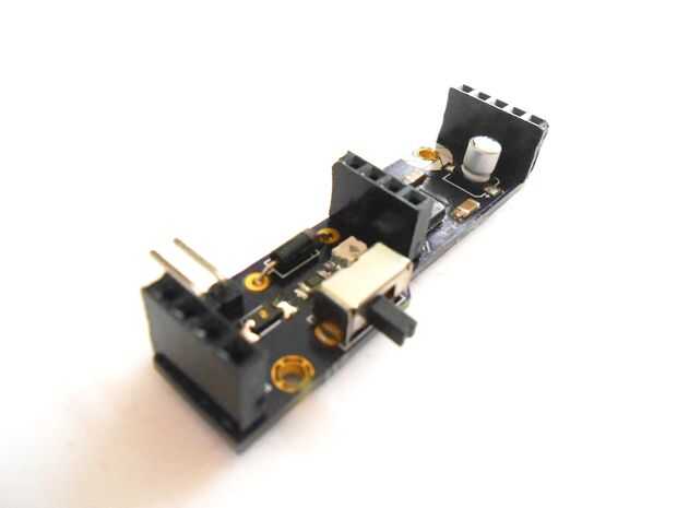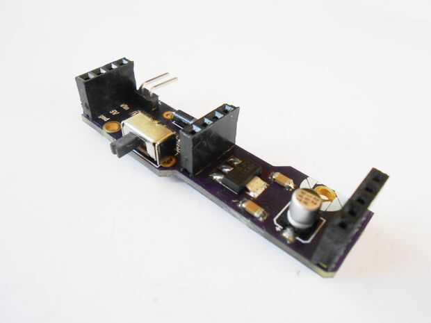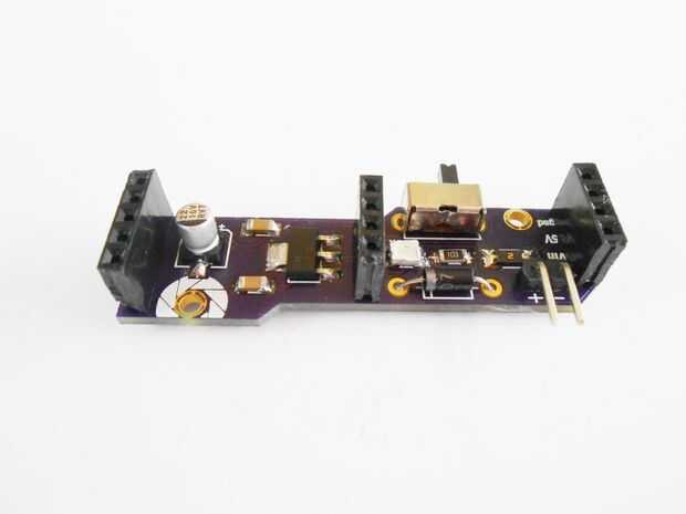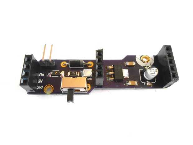 Escudo de energía se coloca en la parte inferior de la pantalla principal. Lo usamos cuando la alimentación principal es de más de 5 volts. Usted puede utilizar niveles de voltajes hasta 12 voltios. Usted puede utilizar como un stand solo CC a CC para tomar el necesarios 5 voltios para la lógica de circuitos de nivel también. La tensión de alimentación principal se entregará a todos los escudos mediante el pin Vin de usbeduino para usarlo en sus cargas con ningún cable adicional. Una solución muy útil!