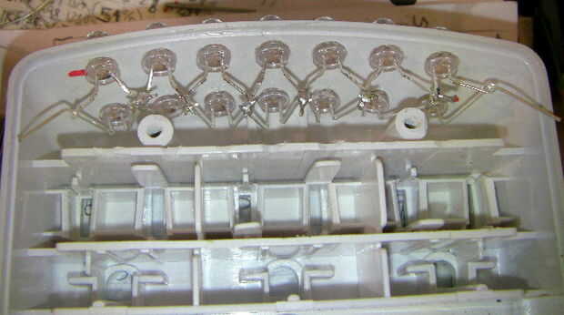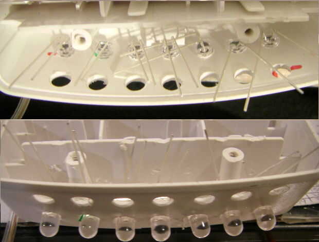 Los LEDs de la curva en forma de "L" (alambre corto en el lado apropiado) y colocar en la fila inferior.