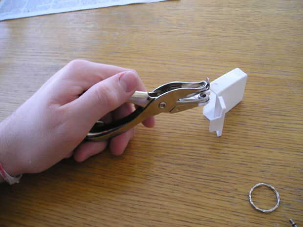 El siguiente golpe va a ser en el lado izquierdo cerca de la cima. Asegúrese de que el llavero será capaz de pasar por estos orificios.