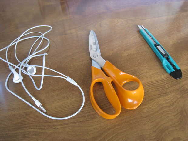 Se necesita: Caja de seda 1, funcionará cualquier marca. 1-auricular, nuevo de cualquier marca 1-tijera 1 x-acto cuchillo 1-MP3 dispositivo u objeto que requiere auriculares. 1-la necesidad de un organizador de auriculares