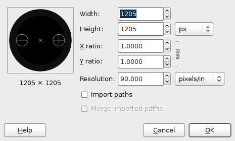 Imprimir el diseño SVG en papel o cartulina fina utilizando el DPI mencionada. Sistemas Linux a menudo pasar por alto la configuración de PPP de SVG, pero puede cargar en GIMP, establecer el DPI de la imagen e imprimir desde allí (véase pantalla de tiro).