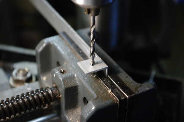 Utilice un taladro más grande para hacer el agujero en el soporte más grande para que el tornillo de montaje pueda pasar y montar el plástico transparente sobre el soporte.