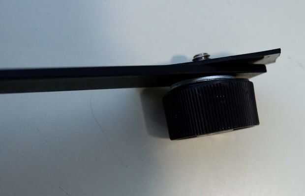 Que había podrido el tornillo de montaje de un viejo montaje en Flash estilo trituradora de la patata y utiliza para conectar el aparato a la cámara. El tornillo de montaje cautivo el flash una vez atornillado a través de un orificio en el soporte de Flash, así que esto había replicado por taladrar un agujero en el extremo de mi montura con un Nº 7 taladro y luego golpearlo con un grifo de 1/4-20 NC.