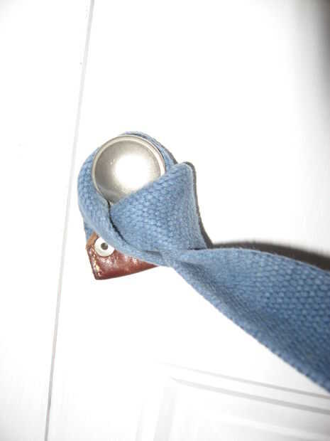 Ate el otro extremo de la correa a algo cerca, asegúrese de que su pesada/suficientemente fuerte para sostener la puerta, no quiere romper cualquier cosa.