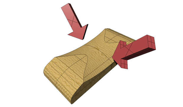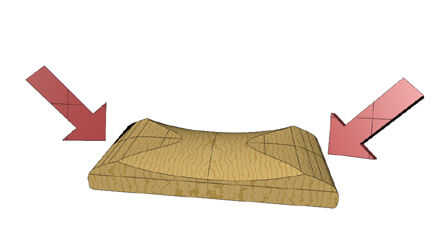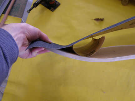 Cortar hojas de siete 34 pulgadas x 11 pulgadas de la chapa del arce (las hojas deben ser más grandes que la Junta final porque habrá residuos de madera en los bordes del proceso de modelado). Tres deben tener el grano va longitudinalmente (más fácil de la manera corta de la curva) y cuatro deben tener el grano va a lo ancho (más fácil a lo largo de la curva). (fig.4a) Asegúrese de arena de cualquier astillado en los bordes para que la madera es suave. (fig.4b)