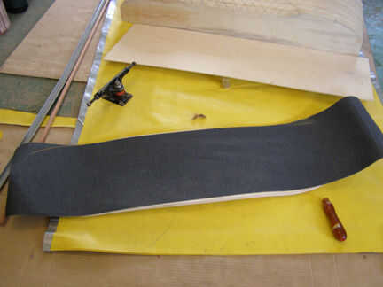 El tablero sí mismo es complete,(fig.4q) ahora solo tienes que aplicar la cinta de agarre. (fig.4r) no se despegue todo el revestimiento del rodillo y apenas pegúelo en porque esto creará burbujas. En su lugar, comience en un extremo y pele apagado solamente un poco respaldo a la vez, trabajando hacia abajo a medida que avanza. (fig.4s)