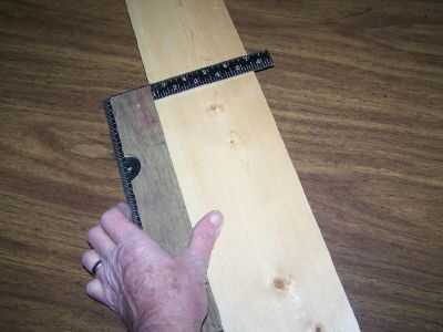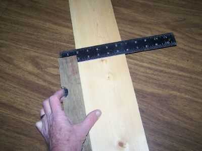 Aquí he deslizado la pieza de madera sobre la pierna más corta de la Plaza de mi acero. Mi dedo aplica presión contra la pierna más corta para mantener firmemente presionado contra la pieza de madera que hice y también contra el borde de la pieza que estoy marcando. Si el corte es un poco flojo, un par de trocitos de papel podría ser doblado varias veces y el papel doblado podría ser deslizado en el corte con la pata de la plaza para funcionar como una cuña que ayuda a mantener la plaza en la madera.