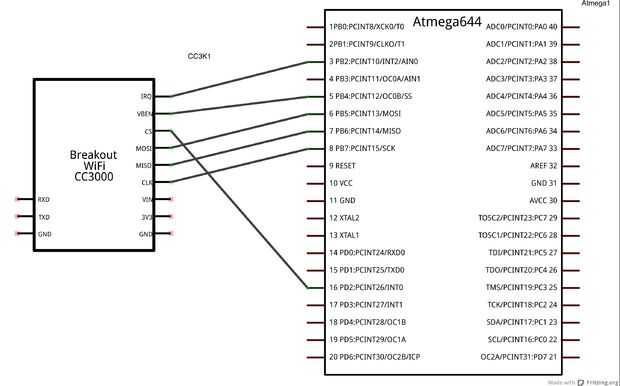Hay una gran variedad de pernos que puede ser utilizado para el cc3000. Sin embargo parece ser un código hecho en la biblioteca para el pin CS. Si desea utilizar algo la otra entonces pin10 (que también pasa a ser RX1) entonces usted tendrá averiguar.