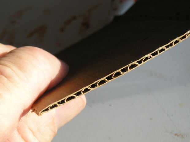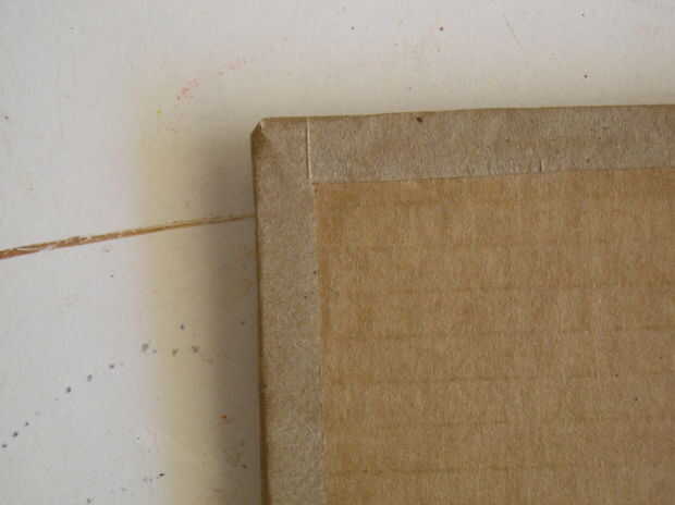 Iba a ser cuero en una billetera típica, pero para nuestro propósito, se utilizan tiras de papel de kraft. Doblar las piezas en la mitad, lengthway, luego pegar a la cartulina. Utilizar una cantidad abundante de pegamento para que la tira de papel se cubre y se adhiere a la billetera.