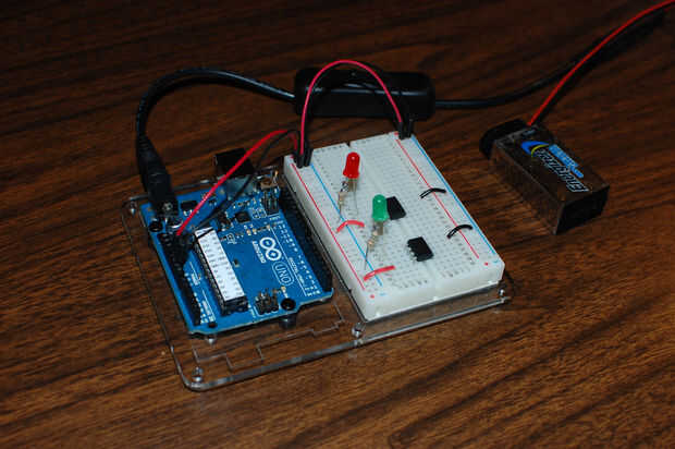 /**************************************** * Blink - for Attiny85 * * The anode of an LED connects to Digital pin one. * (That is physical pin 6, or PB1) * The cathode connects to ground through a * 330-560 Ohm resistor. ****************************************/ int led = 1; int delaytime = 1000; void setup() { pinMode(led, OUTPUT); } void loop() { digitalWrite(led, HIGH); delay(delaytime); digitalWrite(led, LOW); delay(delaytime); } Repita el proceso para el segundo chip.