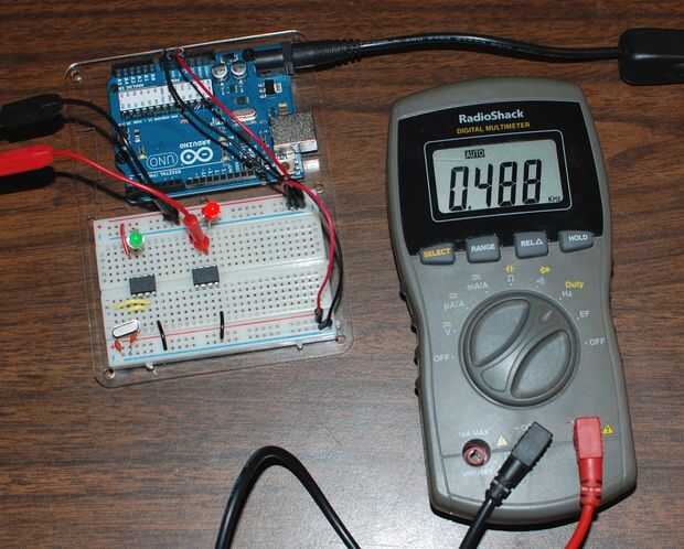 Así que un milisegundo en un milisegundo apagado, el medidor debe leer 500 Hz.