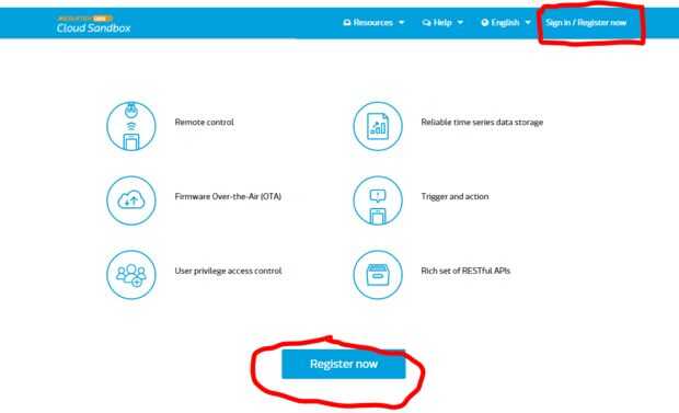 Porque estamos usando el One de LinkIt tenemos fácil acceso a la Sandbox de nube de MediaTek. Este es portal de nube en línea útil de MediaTek que se construyó especialmente para internet de dispositivos de cosas y viene cargado con características que lo hacen muy fácil de conectar las cosas.