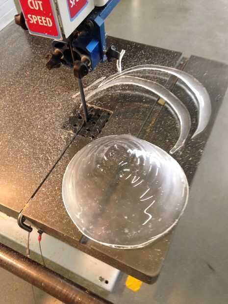 En primer lugar, seguí el proceso de ir, aprender cuál es la mejor recortar los bordes para obtener una base incluso, para que en el próximo proyecto voy a tener una mejor idea de qué hacer para hacer dos piezas encajan perfectamente. El acrílico corta maravillosamente en las sierras, y una antigua banda reciclada de papel de lija de la lijadora de banda adherida a la madera contrachapada hizo buen trabajo de nivelación de los bordes inferiores.