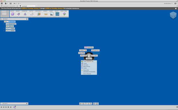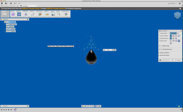 En el modo de esculpir tiene muchas formas diferentes de t-splines para elegir. A partir de ahí creé un Quadball y luego optaron editar desde las opciones del clic derecho. Me encanta esta característica de fusión porque puede crear infinitas formas orgánicas sólo tirar y empujar, girar. Puntos, aristas y caras son todo el juego justo aquí. Usted puede establecer el formulario como una imagen del espejo, por lo que cualquier modificación que hagas a un lado se repiten en el lado opuesto. Incluso puede aumentar el número de segmentos dentro de una cara para detalles muy finos.