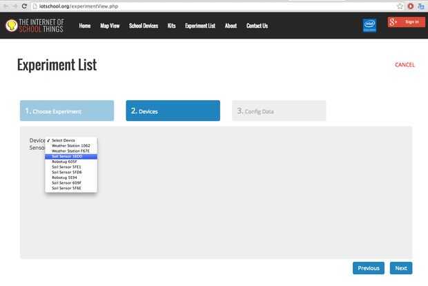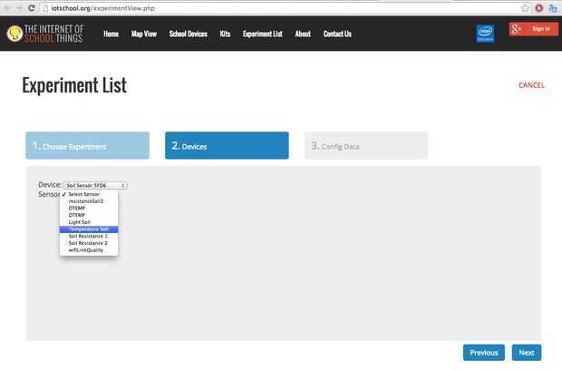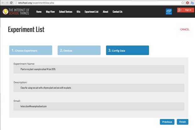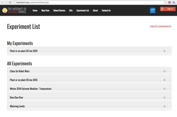 Cuando visite la Internet de las cosas (la escuela) experimento página, serás capaz de acceder a sus experimentos guardados y también cualquier otro guardado experimento de otra escuela (véase el cuadro uno).