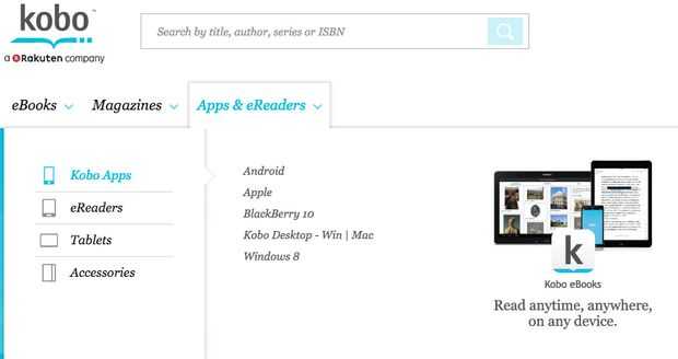 ¿Mecedora un Windows phone, Blackberry, o realmente quieren leer sobre una aplicación de escritorio independiente? Dirígete a la Página principalde Kobo, seleccione las aplicaciones y menú desplegable de eReaders y seleccione la versión apropiada de Kobo para su dispositivo.