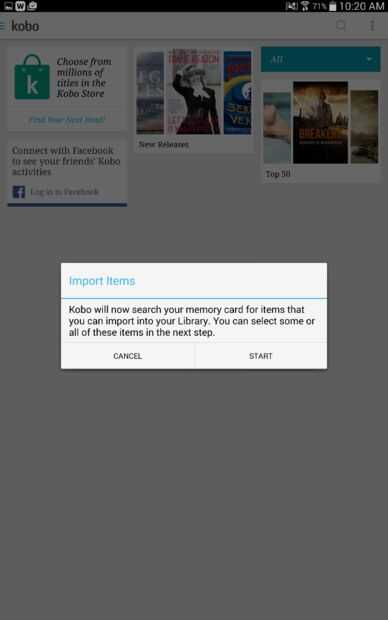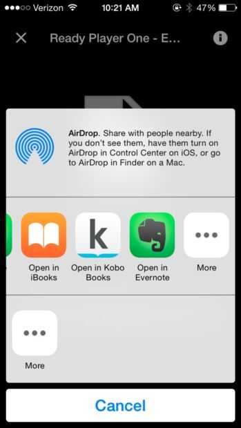 * Si tienes varias aplicaciones capaces de abrir archivos epub, Kobo podría no aparecer como una opción. Debajo de la fila de aplicación iconos deben ser la opción "abrir en" que muestra más aplicaciones que pueden abrir el libro. Kobo debe estar entre ellos si ha instalado la aplicación.