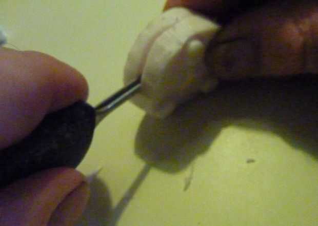 4. mezclar la arcilla y lave muy bien el silicio, preparándose para el próximo vertido. Si el bebedero se pega hacia fuera más allá de la superficie del molde, córtelo para que quede alineada con el silicio, o completamente quitarlo y rellenar el orificio con arcilla.