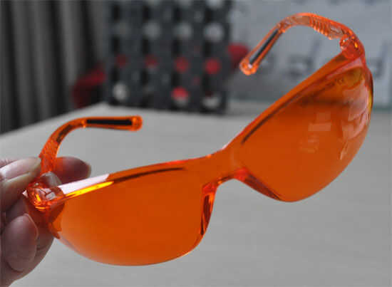 Usando láser gafas de protección, según el color del laser. Láseres de color diferente necesitan gafas de seguridad diferentes.