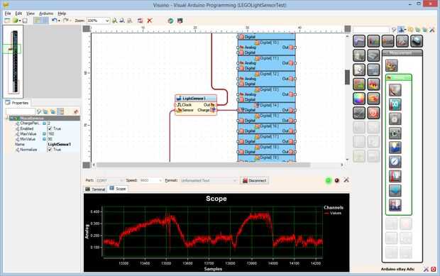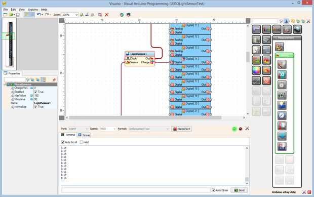 Uso de LEGO MINDSTORMS RCX Sensor de luz con Arduino (programa con Visuino) (9 / 12 paso)