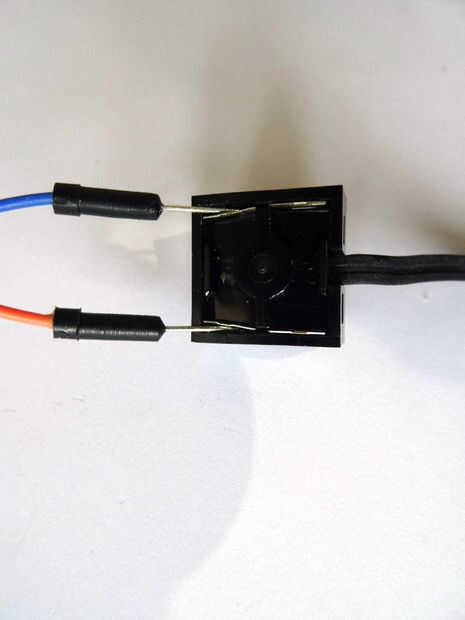 1. Conectar 2 cables a los 2 strips(plates) de metal en la parte inferior del bloque LEGO de conexión eléctrica como se muestra en la (foto 1)