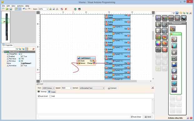 Uso de LEGO MINDSTORMS RCX Sensor de luz con Arduino (programa con Visuino) (6 / 12 paso)