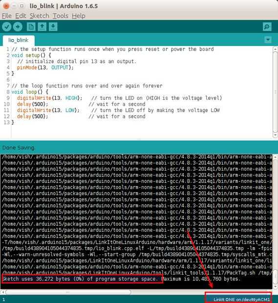 Una vez instalado WiNE debería poder compilar su boceto para uno de LinkIt.