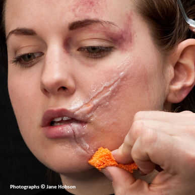 Mientras espero a que cure correctamente, añadir algunos tonos de moretones alrededor del área del ojo para agregar al efecto.