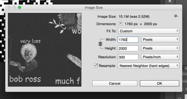 Ampliar la imagen con las estructuras de tejido hacia 1760 px de ancho. Mantenga la configuración en el vecino más cercano (bordes duros). No queremos cualquier antialiasing en allí. Hacer una copia de la imagen con las estructuras de tejido.