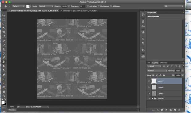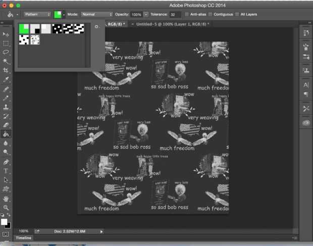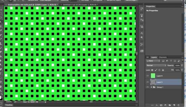 La tela en la parte trasera será un reflejo de la parte delantera y no sería capaces de leer el texto si no darle la vuelta, así que lleve su copia y darle la vuelta. (Imagen > rotación de imagen > flip canvas horizontal.) Pasta de ése parte posteriora en su imagen original. Utilizar el patrón de color verde lima (2 px de ancho, con transparencia en la esquina superior derecha y los otros tres lleno de verde) y una nueva capa de relleno. Seleccionar la parte de color verde lima, seleccionar inverso (Comando + Mayús + I) y eliminar los píxeles de la imagen invertida. Ocultar o eliminar la capa de color verde lima. Ha hecho su trabajo. Ahora hacer una nueva capa, rellenar con el patrón de punto blanco, hacer una nueva capa de relleno con el patrón de punto negro. Consulte imágenes anotada.