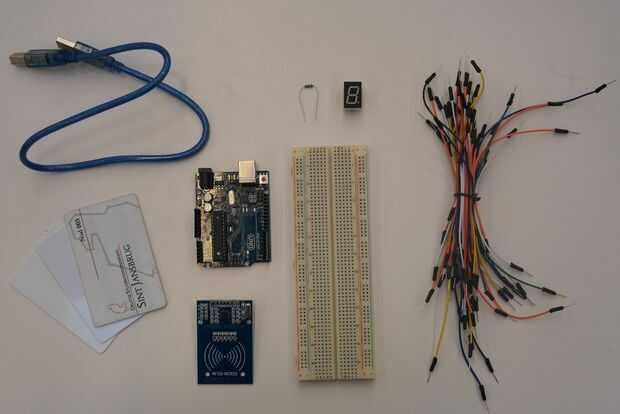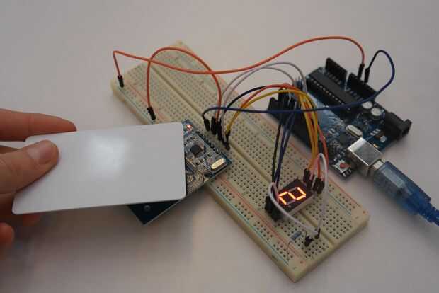 El propósito de este ejercicio es construir un prototipo que puede reconocer diferentes usuarios y mensajes personales. Para ello hemos utilizado y escudo para que Arduino leer la identificación de diferentes tarjetas RFID de RFID y después los muestra en un display de 7 segmentos. Arriba puedes ver un video que demuestra el resultado.