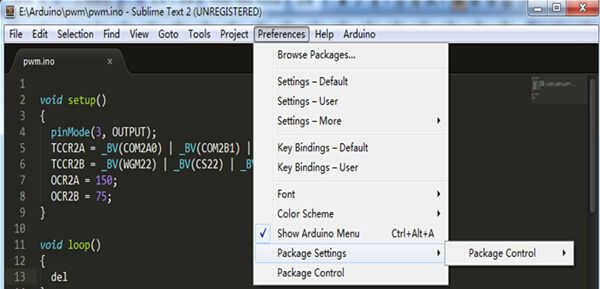 1.3 descomprimir "ST2-Arduino-master.zip" a la instalación directory "~\Sublime texto 2\Pristine paquetes";