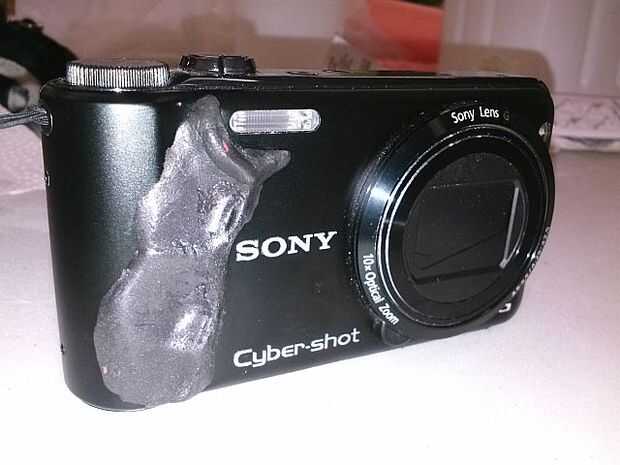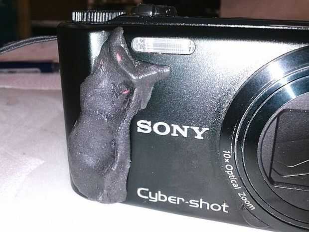 Utilizando negro Sugru he creado un formulario dispone de molde para mis tres dedos de parte inferior en su posición correcta colocación en la cara de la cámara mientras mi dedo índice se apoya sobre el botón del obturador (listo para tomar fotos).