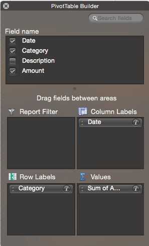b. Haga clic en y arrastre "Categoría" en el área de "Etiquetas de fila".