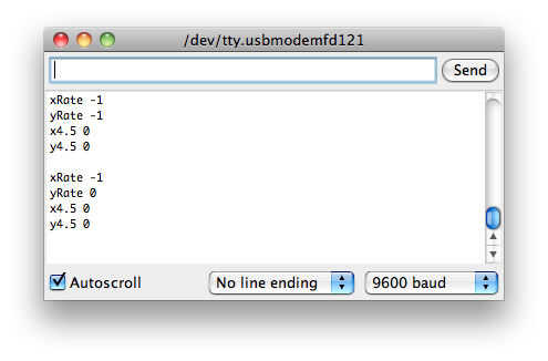 Para este proyecto usé 5 grados de libertad IDG500/ADXL335 board de Sparkfun. Me gusta este foro porque imprime los datos de acelerómetro y giroscopio como 5 tensiones analógicas que se pueden leer fácilmente con cinco pines de entrada analógicas de Arduino. Algunos acelerómetros y giroscopios de salida digitalmente datos mediante la codificación en un ancho de pulso había modulado señal (PWM). Si usted es corto en los pines de entrada analógicos en el Arduino, puede ser una buena idea usar uno de estos chips digitales, pero los chips analógicos son agradables porque requieren un esfuerzo mínimo para conseguir trabajo.