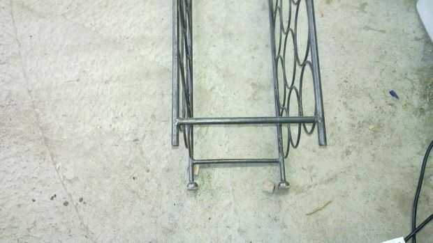 3. Mida y perfore agujeros en la Chistera para las piernas de botellero en. Distancia entre piernas variarán según el portabotellas que está utilizando.