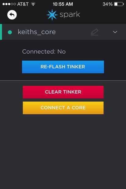 Para restaurar el dispositivo para utilizar el "chapucero" firmware, siga las instrucciones en http://docs.spark.io/tinker/#tinkering-with-tinker-the-tinker-firmware