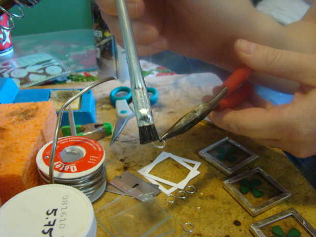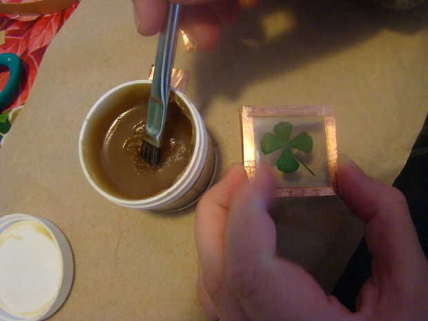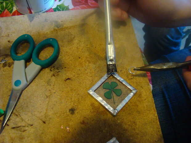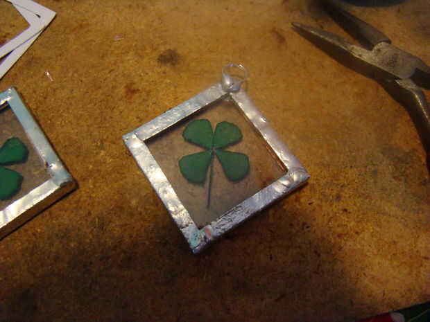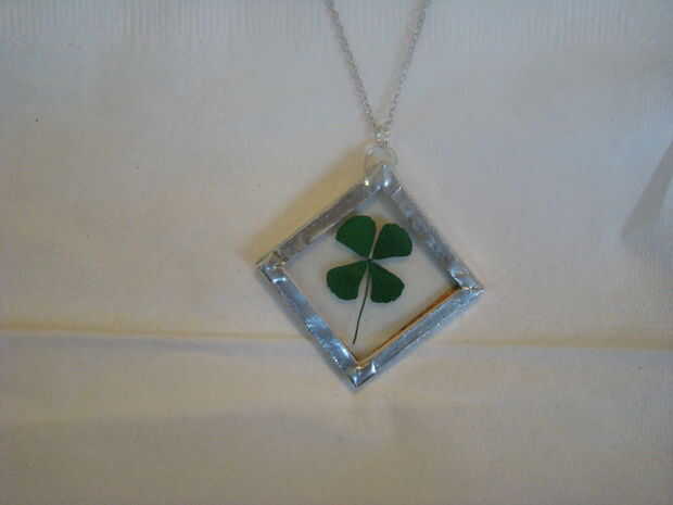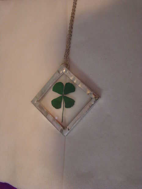 para una persona cuyo color favorito es el verde, siempre estoy luchando para encontrar algo verde para usar en el día de San Patricio. No mirar bien en verde, para no usarlo mucho. Un día, mientras preguntando a través de una tienda de artesanía me encontré con un paquete de secado, prensado de tréboles de cuatro hojas. Entonces me di cuenta de que necesitaba convertir a éstos en un collar y mi búsqueda anual de algo verde a usar sería una cosa del pasado. Así que con la ayuda de mi hija menor, aquí es cómo crear un collar pendiente, usando un trébol de cuatro hojas. Vamos a empezar.