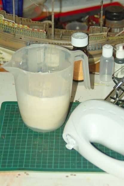 Le dan un gran revuelo con un palo de café para asegurarse de que se mezcla muy bien. Luego añadir dos o tres gotas de jabón líquido de la jarra.