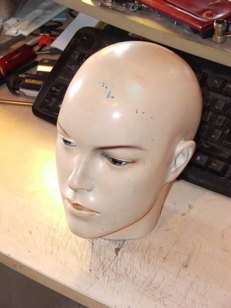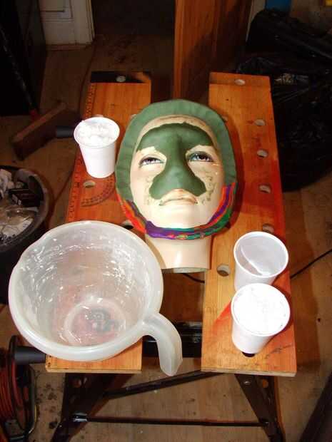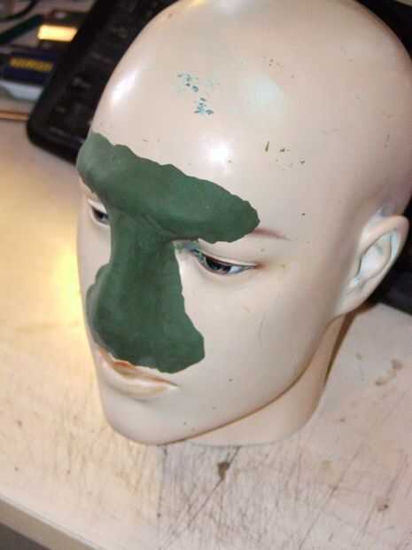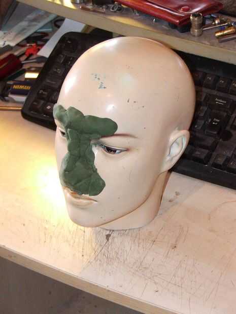 Voy a usar mi cabeza del maniquí como el molde de la cara.