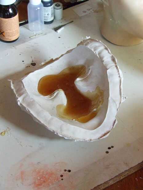 El método aquí es para calentar la gelatina preparada en el microondas hasta que esté líquido (no dejes que hierva). Usted puede utilizar el crudo o las mezclas de espumadas. Recomiendo que para esta máscara pequeña use la materia cruda, de grandes máscaras y prótesis probar la espuma. Una vez que la gelatina se derrite en su jarra (recuerda no hervir), usted está listo para servir.