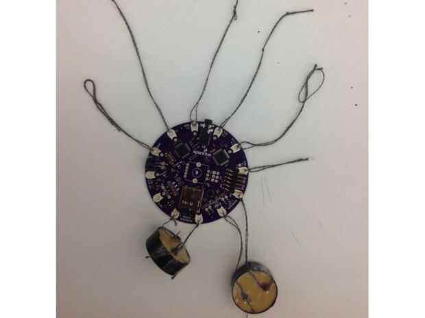 esta fue mi primera vez trabajando con un Arduino Lilypad. He sido ganas de probar algo que tratar con circuitos suaves por un tiempo ahora. Este proyecto es lo que se me ocurrió. El concepto se basa en mi amigo Ethan Dicks del emergente proyecto de