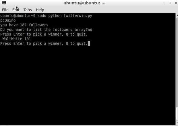 Uso pcDuino3 para hacer un pcDuino3 semanal regalar sorteo para tweeter @pcduino (7 / 7 paso)